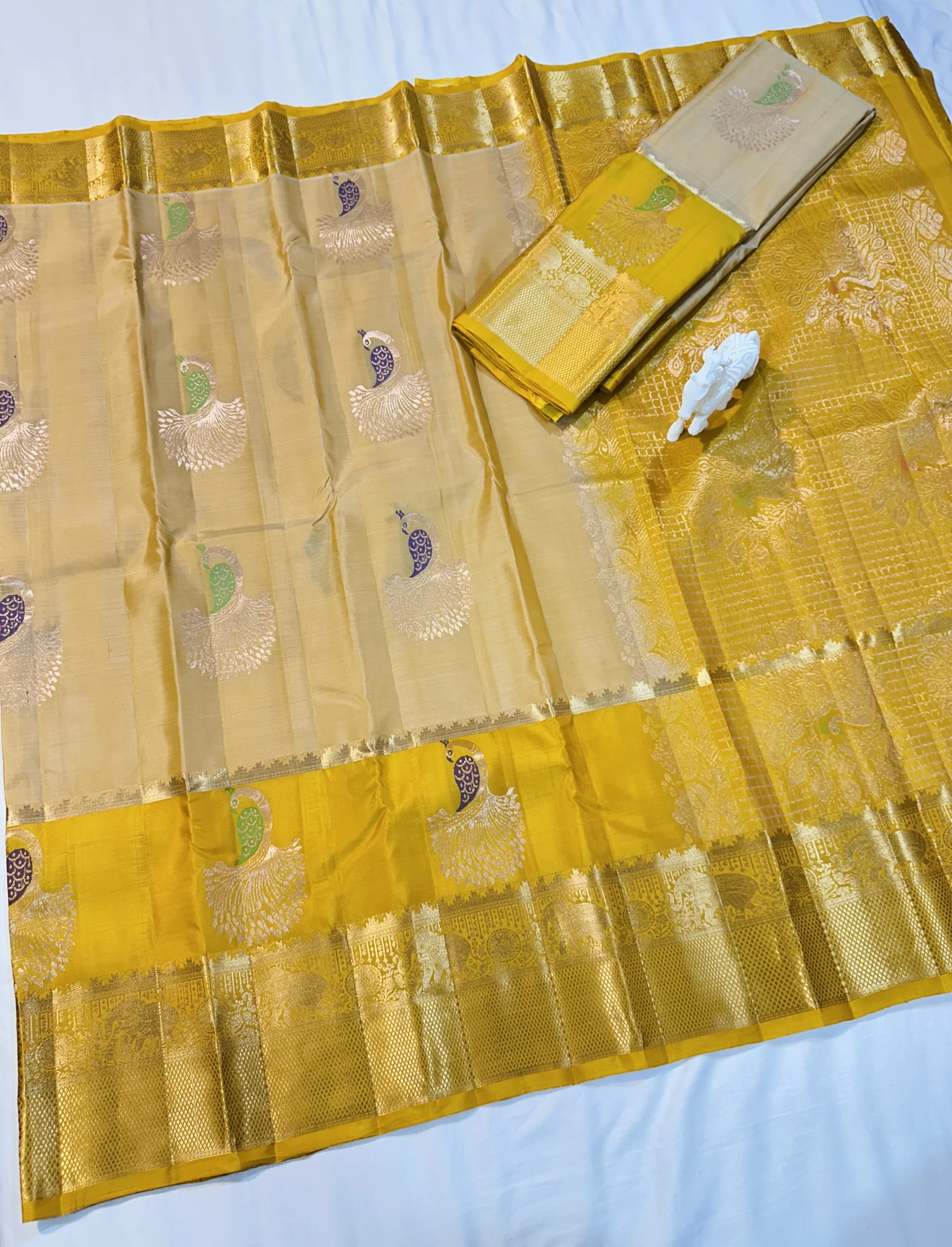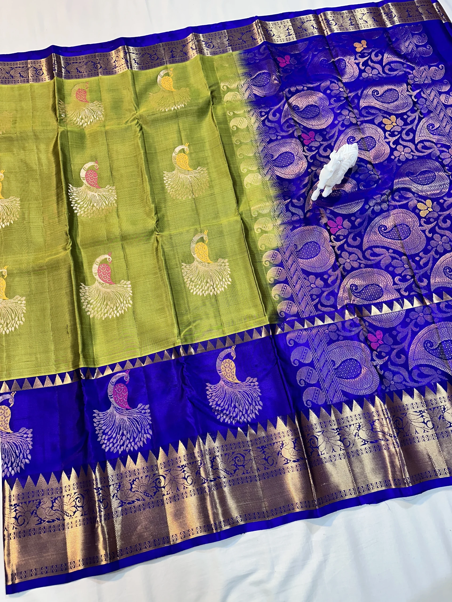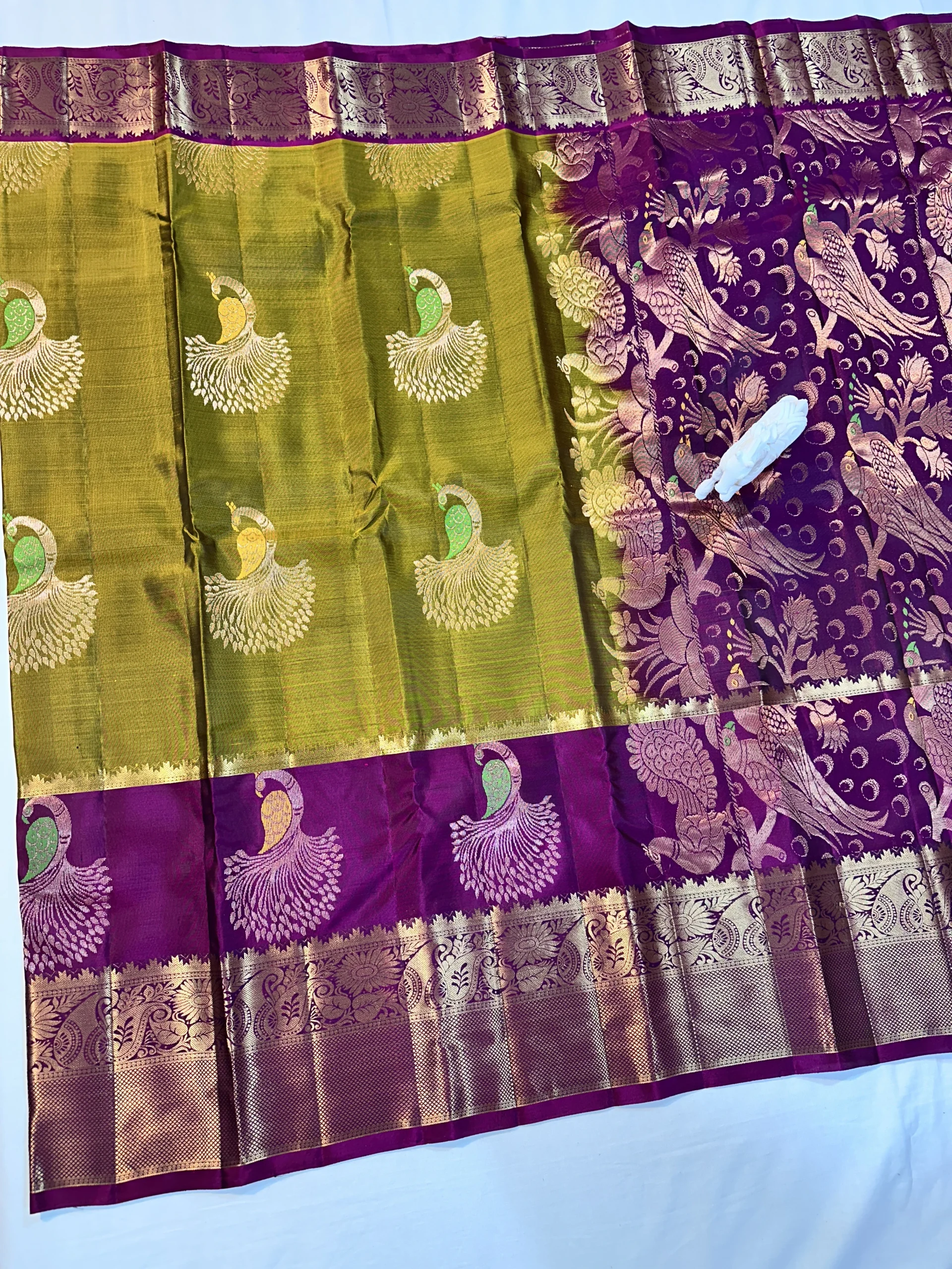 Original price was: ₹11,990.00.₹6,890.00Current price is: ₹6,890.00.Kanchi Pattu Peacock Buti Design Saree