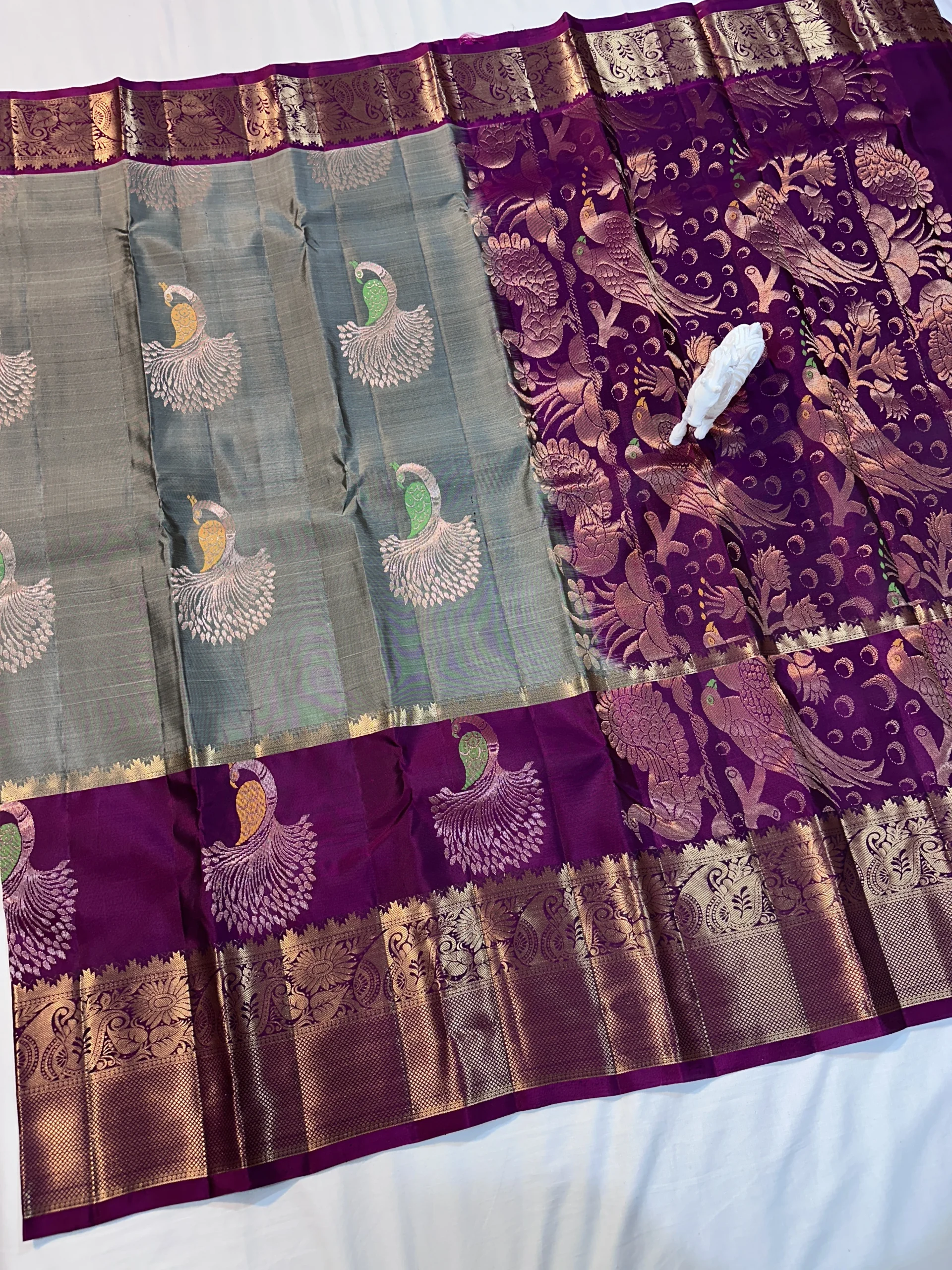 Kanchi Pattu Peacock Buti Design Saree